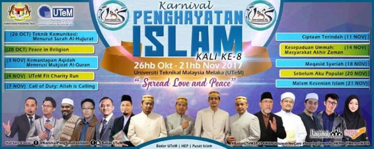 Universiti Teknikal Malaysia Melaka (UTeM) menerusi Kelab Badan Dakwah dan Rohani (BADAR) Pejabat Hal Ehwal Pelajar akan menganjurkan Karnival Penghayatan Islam dalam usaha menyemai keharmonian …
